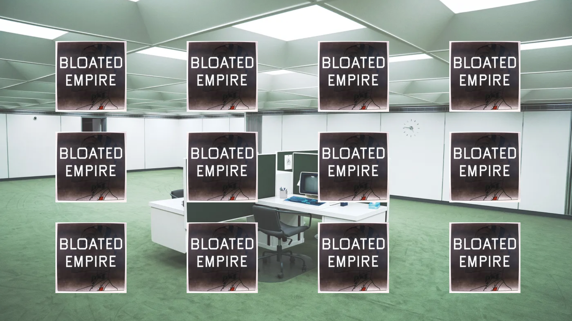 Bloated Empire by Ed Ruscha 12x on Severance office backdrop